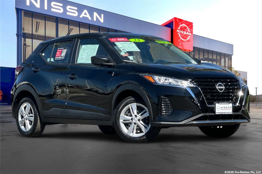Certified. Odometer is 26578 miles below market average! CARFAX One-Owner. 31/36 City/Highway MPGThis 2023 Super Black Nissan Kicks S FWD is well equipped and includes these features and benefits: Nissan Certified Certified, 16" Steel Wheels w/Full Covers, 3.93 Axle Ratio, 6 Speakers, ABS brakes, Air Conditioning, AM/FM radio, Apple CarPlay/Android Auto, Auto High-beam Headlights, Blind Spot Warning, Brake assist, Bumpers: body-color, Carpeted Floor Mats w/Cargo Mat, Center Armrest w/Storage, Cloth Seat Trim, Driver door bin, Driver vanity mirror, Driver's Seat Mounted Armrest, Dual front impact airbags, Dual front side impact airbags, Electronic Stability Control, Front anti-roll bar, Front Bucket Seats, Front reading lights, Front wheel independent suspension, Fully automatic headlights, Illuminated entry, Knee airbag, Low tire pressure warning, Occupant sensing airbag, Outside temperature display, Overhead airbag, Panic alarm, Passenger door bin, Passenger vanity mirror, Power door mirrors, Power steering, Power windows, Radio data system, Radio: AM/FM Audio System, Rear Parking Sensors, Rear reading lights, Rear side impact airbag, Rear window defroster, Rear window wiper, Remote keyless entry, Speed control, Splash Guards Grain (4 Piece), Split folding rear seat, Sport steering wheel, Steering wheel mounted audio controls, Tachometer, Telescoping steering wheel, Tilt steering wheel, Traction control, Trip computer, USB Charging Cable Set - Nissan, and Variably intermittent wipers.Nissan Certified Details: * Limited Warranty: 84 Month/100,000 Mile (whichever occurs first) * Vehicle History * Roadside Assistance * 167 Point Inspection * Transferable Warranty * 7 Year/100,000 Mile Limited Warranty, 24/7 Hour Roadside Assistance, Carfax Vehicle History Report, Plus 1 Year Pre-Paid Maintenance Included. Gas Powered Nissan Models Only. * Warranty Deductible: $100