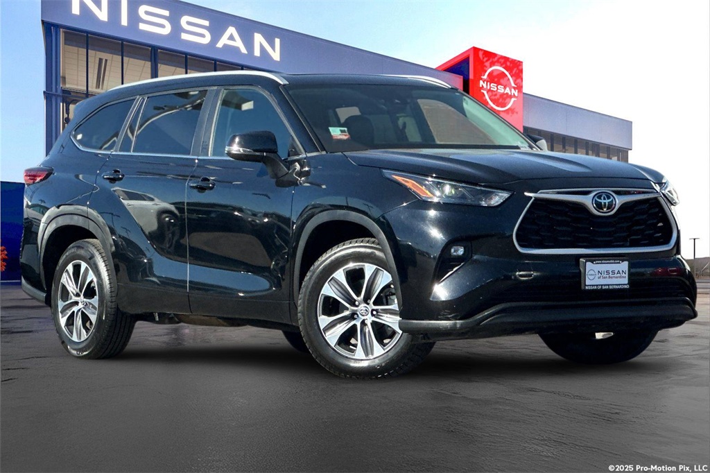 CARFAX One-Owner. 22/29 City/Highway MPGABS brakes, Active Cruise Control, Alloy wheels, Electronic Stability Control, Front dual zone A/C, Heated door mirrors, Heated Front Bucket Seats, Heated front seats, Illuminated entry, Low tire pressure warning, Power Liftgate, Power moonroof, Remote keyless entry, Traction control.This 2023 Midnight Black Toyota Highlander XLE FWD is well equipped and includes these features and benefits: ABS brakes, Active Cruise Control, Alloy wheels, Electronic Stability Control, Front dual zone A/C, Heated door mirrors, Heated Front Bucket Seats, Heated front seats, Illuminated entry, Low tire pressure warning, Power Liftgate, Power moonroof, Remote keyless entry, Traction control, 3.329 Axle Ratio, 3rd row seats: split-bench, 4-Wheel Disc Brakes, 6 Speakers, Air Conditioning, AM/FM radio: SiriusXM, Apple CarPlay/Android Auto, Auto High-beam Headlights, Auto-dimming Rear-View mirror, Automatic temperature control, Brake assist, Bumpers: body-color, Delay-off headlights, Driver door bin, Driver vanity mirror, Dual front impact airbags, Dual front side impact airbags, Emergency communication system: Safety Connect (up to 10-year trial subscription), Exterior Parking Camera Rear, Four wheel independent suspension, Front anti-roll bar, Front Bucket Seats, Front Center Armrest, Front fog lights, Front reading lights, Fully automatic headlights, Garage door transmitter: HomeLink, Knee airbag, Leather Shift Knob, Leather steering wheel, Occupant sensing airbag, Outside temperature display, Overhead airbag, Overhead console, Panic alarm, Passenger door bin, Passenger vanity mirror, Power door mirrors, Power driver seat, Power passenger seat, Power steering, Power windows, Radio: 8" Toyota Audio Multimedia, Rear air conditioning, Rear anti-roll bar, Rear reading lights, Rear window defroster, Rear window wiper, Reclining 3rd row seat, Roof rack: rails only, Security system, SofTex Seat Trim, Speed control, Speed-sensing steering, Split folding rear seat, Spoiler, Steering wheel mounted audio controls, Tachometer, Telescoping steering wheel, Tilt steering wheel, Trip computer, Turn signal indicator mirrors, Variably intermittent wipers, and Wheels: 18" Machined-Finish Alloy.