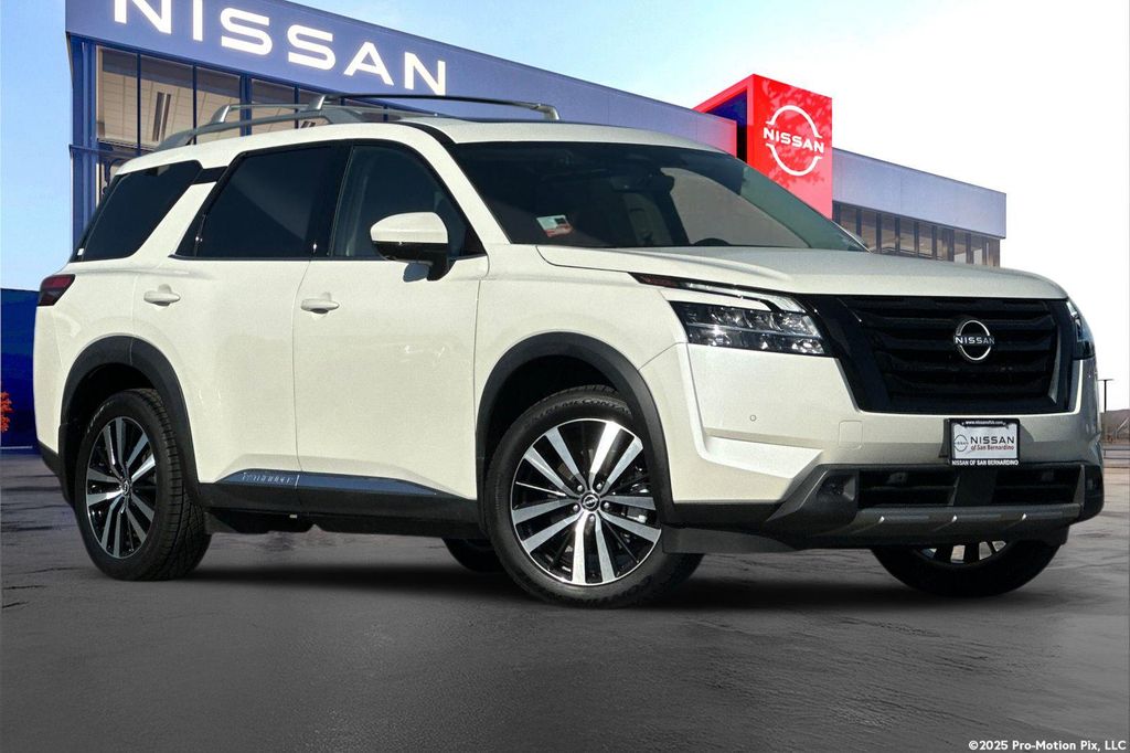 Certified. Odometer is 11687 miles below market average! CARFAX One-Owner.4WD.This 2024 Pearl White Tricoat Nissan Pathfinder Platinum 4WD is well equipped and includes these features and benefits: Black Appearance Package (Black Grille (K10) and Black Liftgate Emblems), Cargo Package (Cargo Area Protector, Cargo Net, and First Aid Kit), Platinum Captain Chairs Package (2nd-Row Captain Chairs and 2nd-Row Rear Headrest), Nissan Certified Certified, 4WD, 13 Speakers, 3rd row seats: bench, 4-Wheel Disc Brakes, ABS brakes, Air Conditioning, Alloy wheels, AM/FM radio: SiriusXM, Auto High-beam Headlights, Auto tilt-away steering wheel, Auto-dimming Rear-View mirror, Automatic temperature control, Axle Ratio: 4.334, Black Splash Guards (Set of 4), Bodyside moldings, Bose Premium Audio System, Brake assist, Bumpers: body-color, Captain's Chairs Carpeted Floor Mats (Set of 4), Cross Bars, Dash Cam - Dual Camera Drive Recorder, Delay-off headlights, Driver door bin, Driver vanity mirror, Dual front impact airbags, Dual front side impact airbags, Electronic Stability Control, Emergency communication system, Exterior Parking Camera Rear, Four wheel independent suspension, Front anti-roll bar, Front Bucket Seats, Front Center Armrest, Front dual zone A/C, Front reading lights, Fully automatic headlights, Garage door transmitter: HomeLink, Heads-Up Display, Heated & Cooled Front Bucket Seats, Heated door mirrors, Heated front seats, Heated rear seats, Heated steering wheel, Illuminated entry, Knee airbag, Leather steering wheel, LED Fog Lamps, Low tire pressure warning, Memory seat, Navigation system: NissanConnect with Navigation and Services, Nissan USB Charging Cable Set, NissanConnect featuring Apple CarPlay and Android Auto, NissanConnect w/Navigation & Services, Occupant sensing airbag, Outside temperature display, Overhead airbag, Overhead console, Panic alarm, Passenger door bin, Passenger vanity mirror, Power door mirrors, Power driver seat, Power Liftgate, Power moonroof, Power passenger seat, Power steering, Power windows, Radio data system, Radio: AM/FM Audio System, Rain sensing wipers, Rear air conditioning, Rear anti-roll bar, Rear reading lights, Rear seat center armrest, Rear side impact airbag, Rear window defroster, Rear window wiper, Reclining 3rd row seat, Remote keyless entry, Security system, Semi-Aniline Leather-Appointed Seating Surfaces, Speed control, Speed-sensing steering, Speed-Sensitive Wipers, Split folding rear seat, Spoiler, Steering wheel memory, Steering wheel mounted audio controls, Tachometer, Telescoping steering wheel, Tilt steering wheel, Traction control, Trip computer, Turn signal indicator mirrors, Variably intermittent wipers, Ventilated front seats, and Wheels: 20" x 8J Machined Alloy.Nissan Certified Details: * Vehicle History * Transferable Warranty * Roadside Assistance * Warranty Deductible: $100 * Limited Warranty: 84 Month/100,000 Mile (whichever occurs first) * 7 Year/100,000 Mile Limited Warranty, 24/7 Hour Roadside Assistance, Carfax Vehicle History Report, Plus 1 Year Pre-Paid Maintenance Included. Gas Powered Nissan Models Only. * 167 Point Inspection