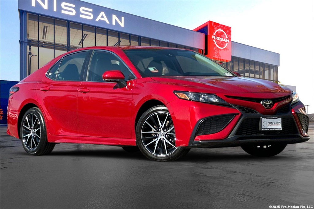 CARFAX One-Owner. 28/39 City/Highway MPGBlack Cloth, ABS brakes, Active Cruise Control, Alloy wheels, Electronic Stability Control, Front dual zone A/C, Heated door mirrors, Illuminated entry, Low tire pressure warning, Remote keyless entry, Traction control.This 2024 Red Toyota Camry SE FWD is well equipped and includes these features and benefits: Black Cloth, ABS brakes, Active Cruise Control, Alloy wheels, Electronic Stability Control, Front dual zone A/C, Heated door mirrors, Illuminated entry, Low tire pressure warning, Remote keyless entry, Traction control, 18" x 8J Alloy Wheels, 4-Wheel Disc Brakes, 6 Speakers, Air Conditioning, AM/FM radio: SiriusXM, Apple CarPlay/Android Auto, Auto High-beam Headlights, Automatic temperature control, Brake assist, Bumpers: body-color, Delay-off headlights, Driver door bin, Driver vanity mirror, Dual front impact airbags, Dual front side impact airbags, Emergency communication system: Safety Connect (1-year trial), Exterior Parking Camera Rear, Four wheel independent suspension, Front anti-roll bar, Front Bucket Seats, Front Center Armrest, Front reading lights, Fully automatic headlights, Knee airbag, Leather steering wheel, Occupant sensing airbag, Outside temperature display, Overhead airbag, Overhead console, Panic alarm, Passenger door bin, Passenger vanity mirror, Power door mirrors, Power driver seat, Power steering, Power windows, Radio data system, Radio: Audio, Rear anti-roll bar, Rear seat center armrest, Rear side impact airbag, Rear window defroster, Security system, Speed control, Speed-sensing steering, Split folding rear seat, Spoiler, Sport SofTex Seat Trim w/Fabric Inserts, Steering wheel mounted audio controls, Tachometer, Telescoping steering wheel, Tilt steering wheel, Trip computer, Turn signal indicator mirrors, and Variably intermittent wipers.