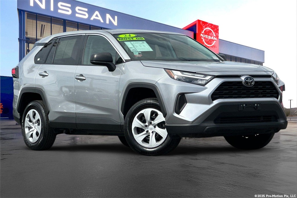 CARFAX One-Owner. 27/34 City/Highway MPGAWD, Black Cloth.This 2024 Silver Sky Toyota RAV4 LE AWD is well equipped and includes these features and benefits: AWD, Black Cloth, 17" Steel Wheels, 4-Wheel Disc Brakes, 6 Speakers, ABS brakes, Air Conditioning, AM/FM radio: SiriusXM, Auto High-beam Headlights, Axle Ratio: 3.177, Brake assist, Bumpers: body-color, Driver door bin, Driver vanity mirror, Dual front impact airbags, Dual front side impact airbags, Electronic Stability Control, Emergency communication system: Safety Connect (10-year trial), Exterior Parking Camera Rear, Fabric Seat Trim, Four wheel independent suspension, Front anti-roll bar, Front Bucket Seats, Front Center Armrest, Front reading lights, Illuminated entry, Knee airbag, Low tire pressure warning, Occupant sensing airbag, Outside temperature display, Overhead airbag, Overhead console, Panic alarm, Passenger door bin, Passenger vanity mirror, Power door mirrors, Power steering, Power windows, Radio data system, Radio: AM/FM/XM Audio System, Rear anti-roll bar, Rear seat center armrest, Rear window defroster, Rear window wiper, Remote keyless entry, Speed control, Speed-sensing steering, Split folding rear seat, Spoiler, Steering wheel mounted audio controls, Tachometer, Telescoping steering wheel, Tilt steering wheel, Traction control, and Trip computer.